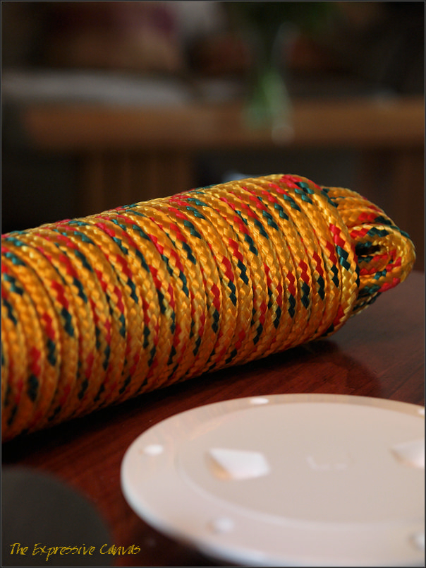 Of course, if we are going to replace all the blocks for the mainsheet, we might as well replace the rope too! So, we have a nice new mainsheet. This new mainsheet is longer to accommodate the extra block-and-tackle-type setup between the end of the boom and the bridle at the aft end of the boat.