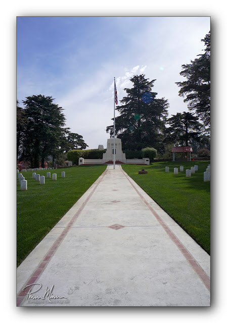As most everyone who follows this blog knows, we recently traveled across the country by rail. While we were in San Francisco, we stayed on an old Army post named The Presidio where I felt more at home than I have since retiring (more on that later in another blog entry). There were many interesting sites to see on this old post including many spectacular and scenic views. On our last day residing on this beautiful, scenic, historic and memorable property, we spent a good portion of the day visiting the National Cemetery which is located within The Presidio grounds.